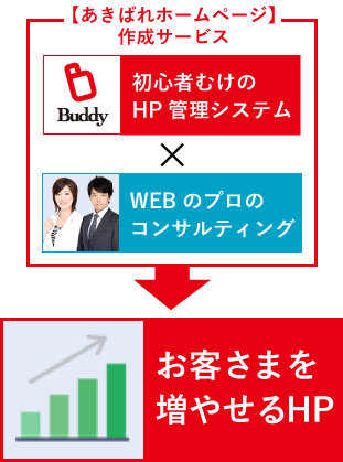 あきばれホームページは初心者むけのHP更新システムとコンサルティングが組み合わされた初めてのホームページ作成でも安心のサービスです。