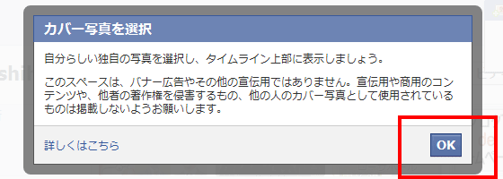 さて、次に、Facebookのカバー画像にはいくつか規定があることに注意してください。必ずしもどのような画像でも良いというわけではありません。