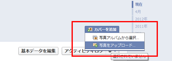 - 2、カバー写真を選択
